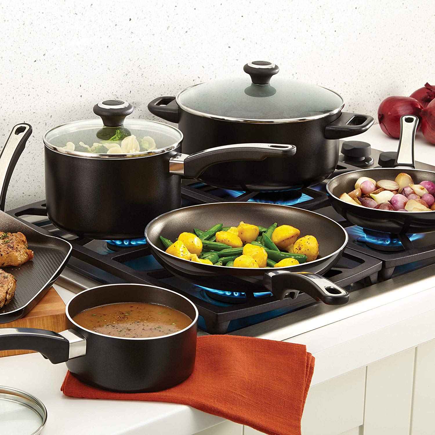 Farberware has brought performance, convenience and reliability to countless kitchens for over a century, and this cookware set continues that tradition for a new generation. The High Performance collection makes it easy to turn out complete, delicious meals. Busy cooks will appreciate the convenience of this Farberware High Performance Nonstick collection that helps get memorable meals on the table in no time.